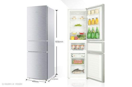 三门冰箱分为上、中、下三层,上层冷藏,可放时令的瓜果鲜蔬;中层是软冷冻,适合放冰镇的啤酒、可乐等饮料;下层是冷冻区,可以长期存放各种肉类制品。