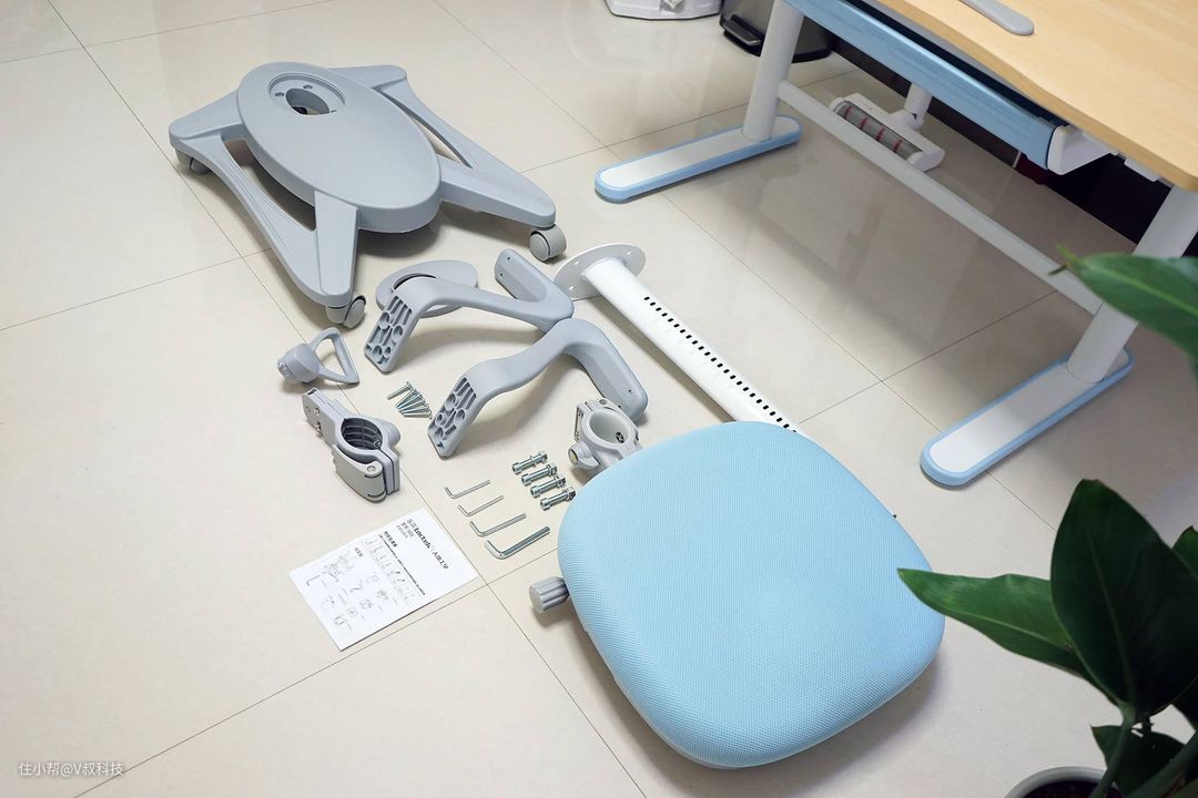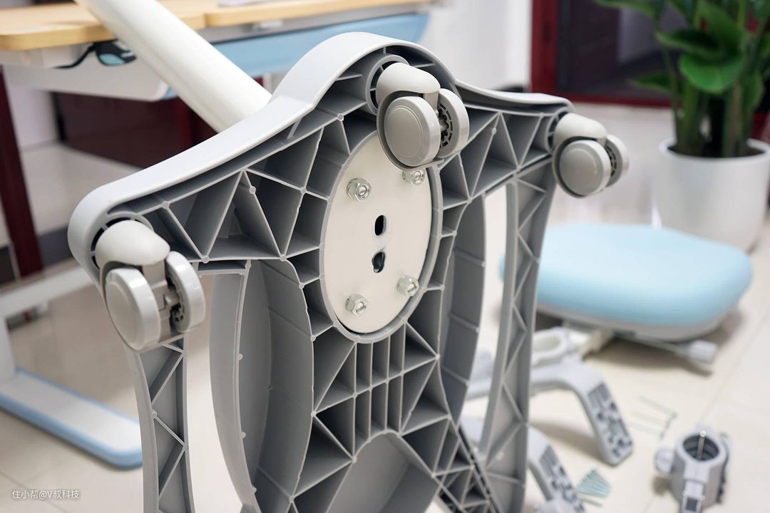 安装学习椅,笔者收到的时候,每个部件都是独立包装好的,保护的非常不错,安装也挺简单,只需要把每个部件安装在对应的位置即可。像滑轮的安装相对简单,插入即可,椅座底盘与座椅连接杆的安装就需要注意,因为底部有螺丝要固定,所以最好是两个人协同安装,这样就很方便对准位置了。底部的轮子拥有自重力锁定功能,当坐下时,它会自动锁止,避免轮子不经意间滑动,因为小孩喜欢乱动,防止不安全,而当人起身时,轮子处于解锁状态,就可以随意推动了,这又是一个比较贴心的地方。