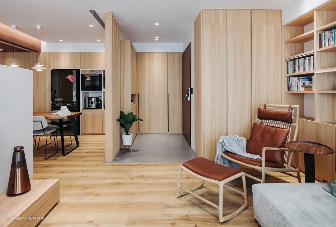 除了墙面与木地板的颜色搭配,定制柜等家具作为占用大面积墙面的存在,柜体的颜色也对空间有着至关重要的影响。