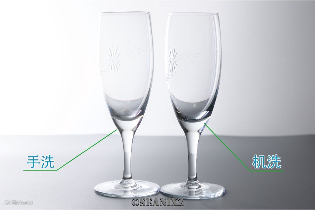 透明的玻璃材质可以很好明显的看出差异,手洗容易带有残留,较深的内壁不能很好地清洁干净,容易残留油渍,机洗则没有这样的问题。