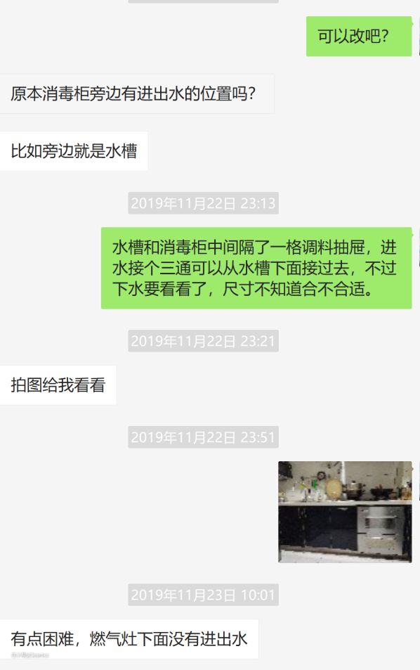 家里正好有消毒柜,位置在燃气灶下方,进出水稍远了一点,此前也在纠结燃气灶下安装的问题。
