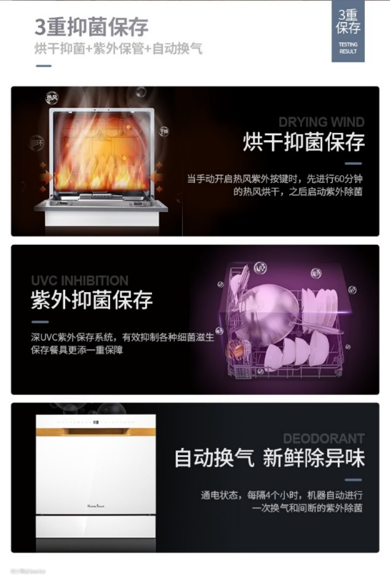 不过对比一些专业的带有高温除菌以及臭氧、紫外多重灭菌功能的专业消毒柜还是有差距的,有条件和空间安装的话还是建议洗碗机和消毒柜同时配备,尤其是如今可以口粪传播存活时间较长的新冠肺病毒炎防控常态化,提升家中各类家电的消毒能力也变得十分有意义了。