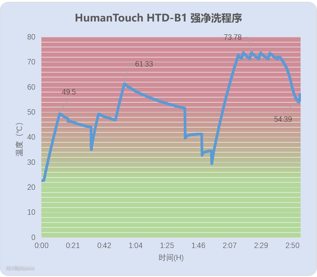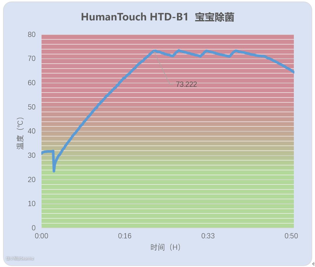 首先来看看与消毒柜功能重叠的消毒程序,同样记录了一下温度变化。