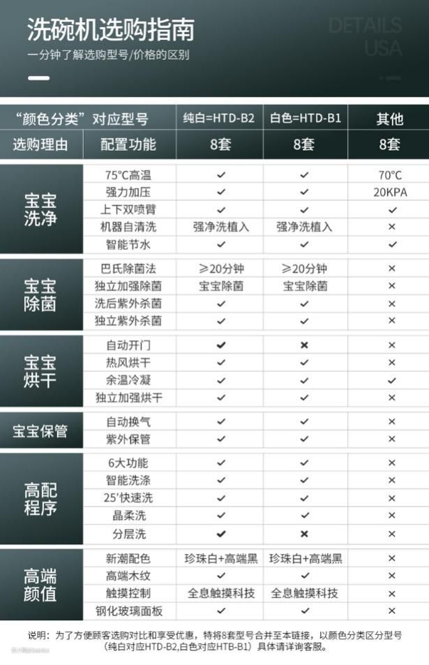 带紫外消毒、热风烘干、自动换气、宝宝除菌,功能上还是不错的,不过没有选自动开门的HTD-B1,另一款HTD-B2则是可以自动开门的,外观在木纹拉手位置有一些差别。
