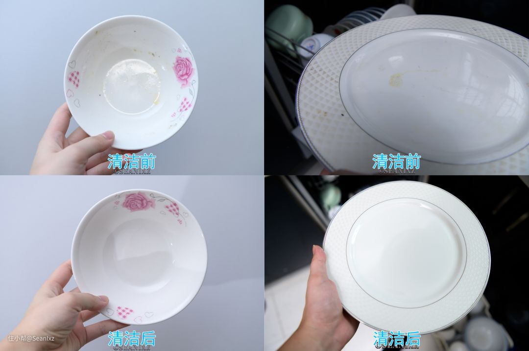日常的饭、油垢、小块的蛋白质,都可以很好的清洁干净,不过对于蒸蛋的碗有大面积残留的情况下还是表现不乐观。