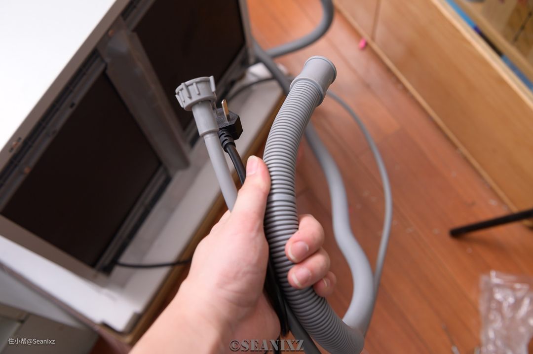 看到背面更加确定了这是台“洗衣机”的想法,简单到只要连接电源、进水、排水三个点就行了,如果不是要拆消毒柜,自己直接塞进去就行了。