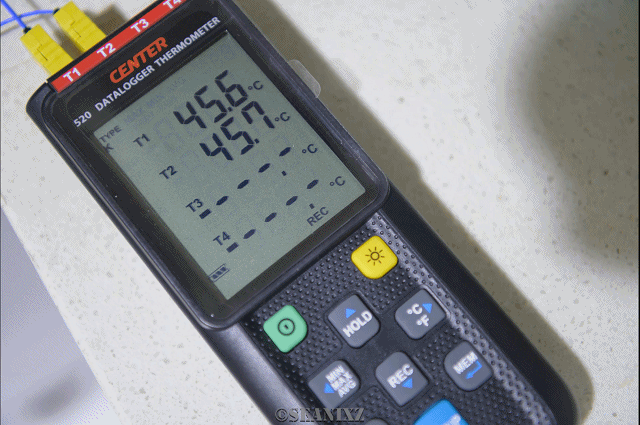 按照国标规定的1m左右距离再次测试噪音水平,46.8dB,还算可以接受,毕竟非实验室条件,噪音是会叠加的。