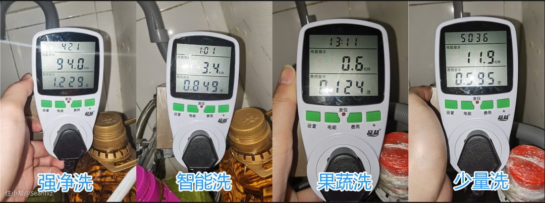 果蔬洗0.124度,单独的水冲洗程序仅有水泵运行还是非常省电的。