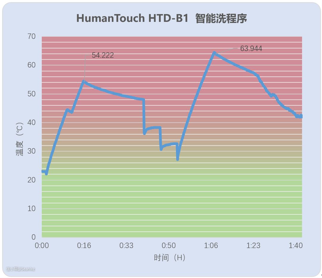 首先来看看与消毒柜功能重叠的消毒程序,同样记录了一下温度变化。
