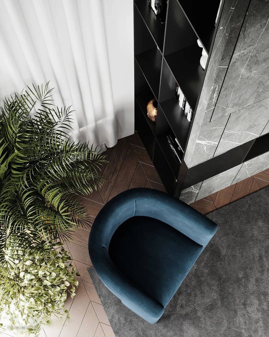 ▲客厅风格极致简约,大理石、木饰面,皮质,丝绒等多元材质巧妙混搭与组合,凸显空间质感与奢华感,精致的软装浓缩着意想不到的功能与细节,打造出深受人们喜爱的现代家居,从而彰显一种高品质的生活方式。