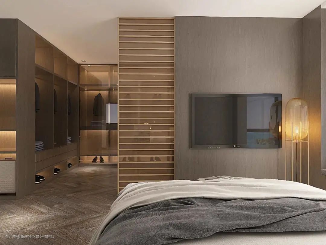 把长虹玻璃作为空间隔断是设计师常见的设计手法,不仅能保护隐私,还有一种“朦胧美”的韵味。