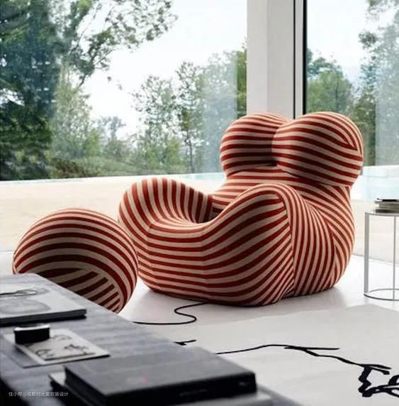 早在1969 年,Gaetano Pesce 就给 Up 系列座椅配了纯色或条纹的外套,创造了一种十分独特的视觉效果,最初的红色版本尤为惹眼,可谓非凡卓越。这些版本也成为了米兰三年展、纽约现代艺术博物馆、维特拉设计博物馆以及蒙特利尔美术馆的永久收藏。