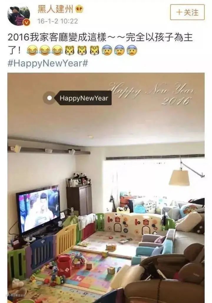 客厅是精力旺盛的熊孩子的“主战场”,无论空间多大,都能分分钟被玩具和杂物给占据,即使是住大房子的明星也逃不过去。
