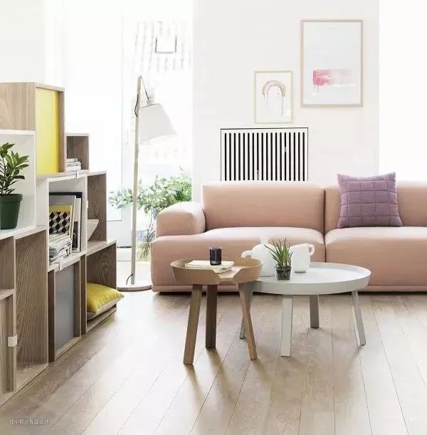电视去中心化:如果电视不是刚需,可以考虑放弃或者不以电视为中心。小沙发和小茶几围坐式摆放,是营造温馨氛围的小能手。而且几张小茶几一拼,轻轻松松就搞定了待客问题。