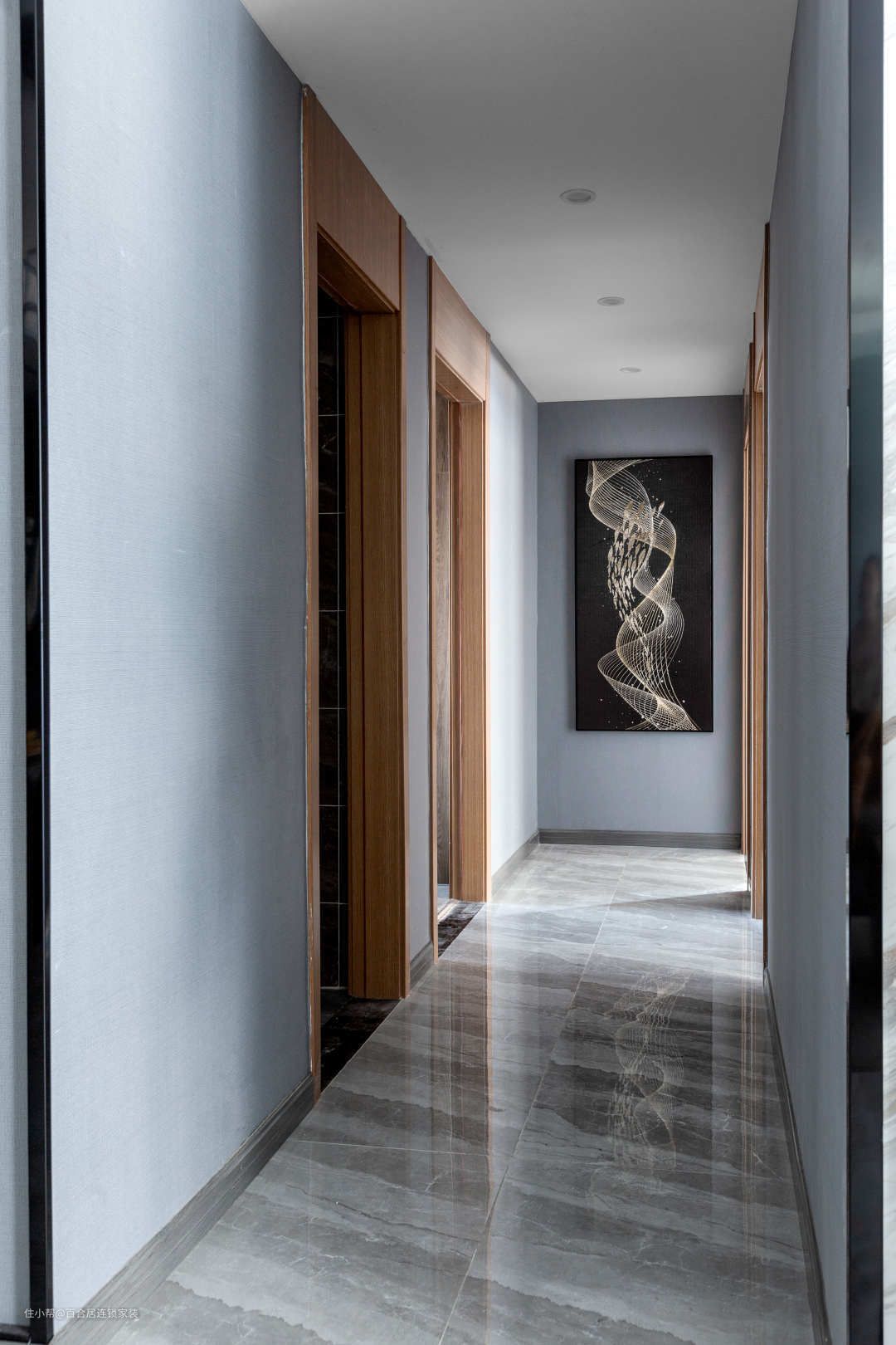 地面采用灰咖色系,体现高级感,色调、材质、手法,剥离了繁华富丽的视觉表现,归属到令人身心安然的感知当中。