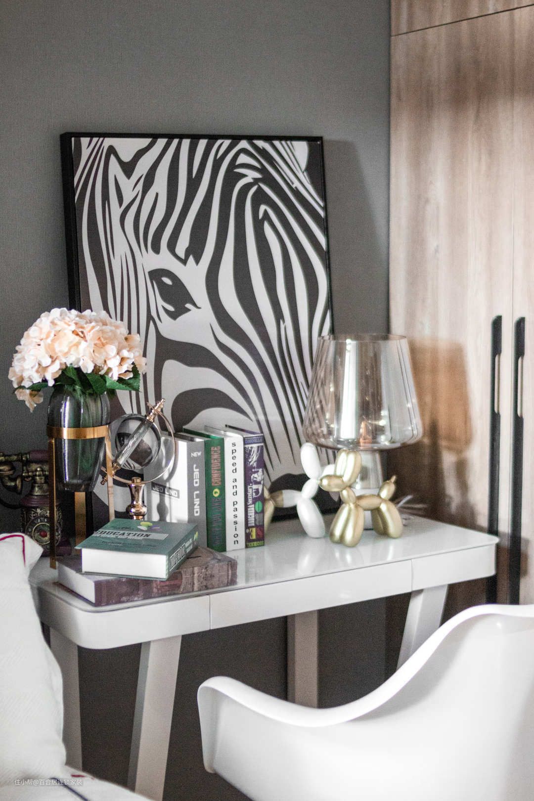 卧室不再是传统休息的空间,而是一几一榻的雅舍。家具到装饰,则选择了灰色调,让居室看起来干净清爽,渗透人心。