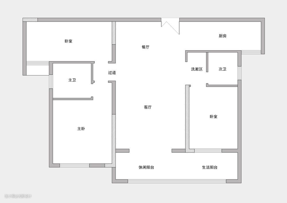 原始建筑结构功能规划明确,超大的观景阳台连通客餐厅,房间较大满足功能需求;内部全是承重墙,几乎没有给设计师留很多的可改造的余地,不过好在除了不南北通透之外,整体的格局都还可以,客厅旁边拥有一个大阳台,一直连接到卧室旁边,次卫的干湿分离都已经规划好了,这种格局基本上达到了精装的标准了。