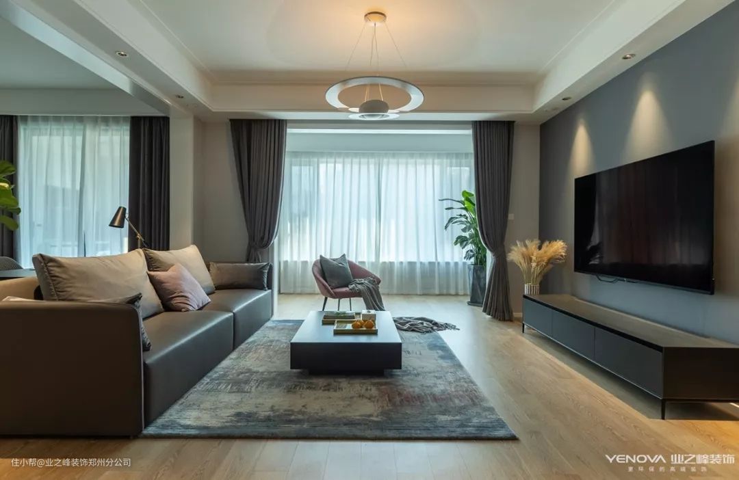 一般来说,客厅承担活动性功能多,起居之外常兼具会客、娱乐等较公共的用途,因而倾向于打造通透、敞亮的空间视感。半透的薄布、轻纱往往会很实用。尤其在春夏季还能增添凉爽,让户外的光线和每一帧风景透帘映入,洒落斑驳光影,为室内带来生动和惬意。