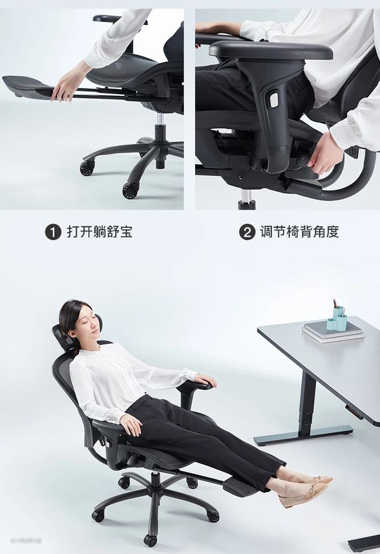 为了让午休时可以更舒服,网易严选工学椅还创新性的使用了“收纳式躺舒宝”,支持41cm伸缩,双钢管支撑,稳定性好。