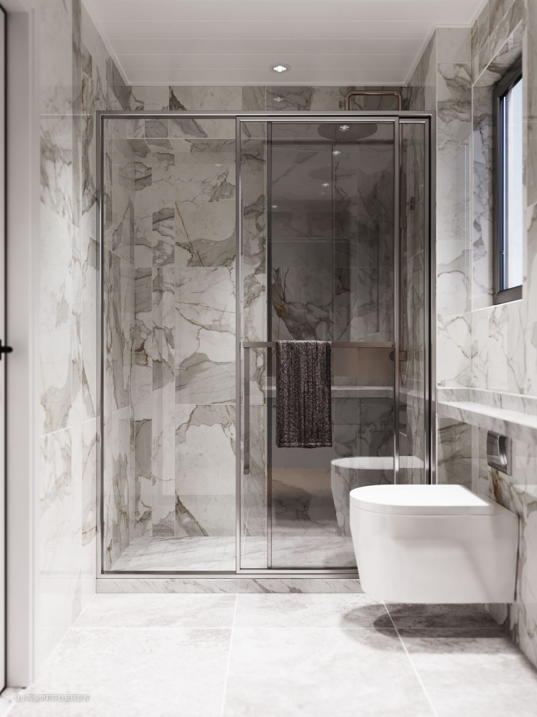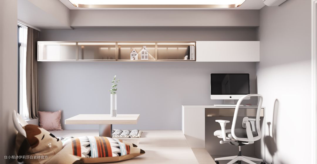 地面选用同色系防滑耐磨的“莱姆石”现代仿古砖铺贴,整体空间美感很和谐。