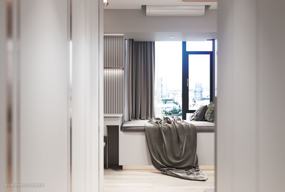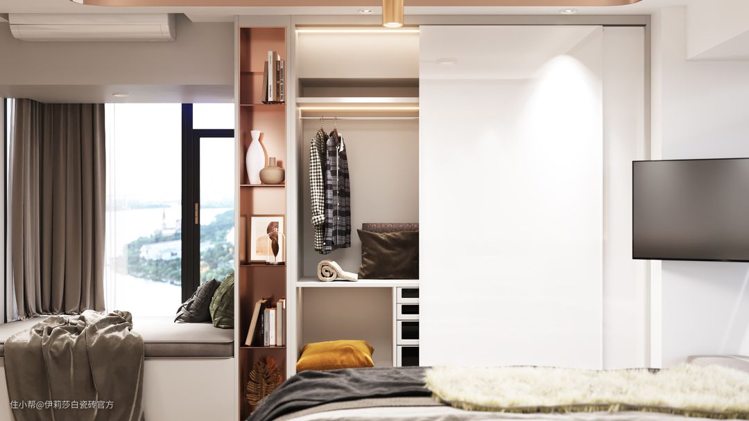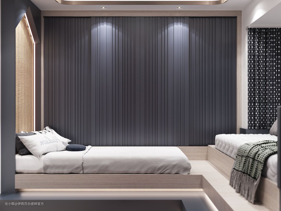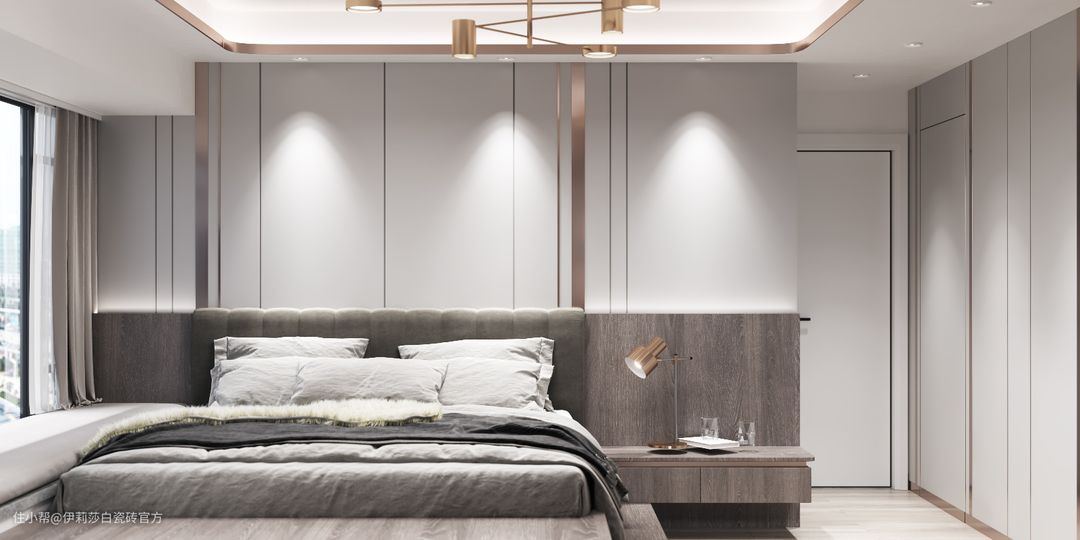 木纹砖传递着一份温暖感,“唯木”有着自然原木的质朴与舒适感,应用在卧室空间,带来宁静雅致的休憩氛围。