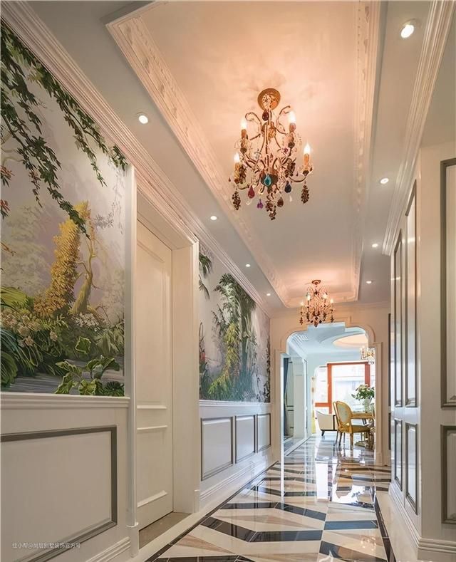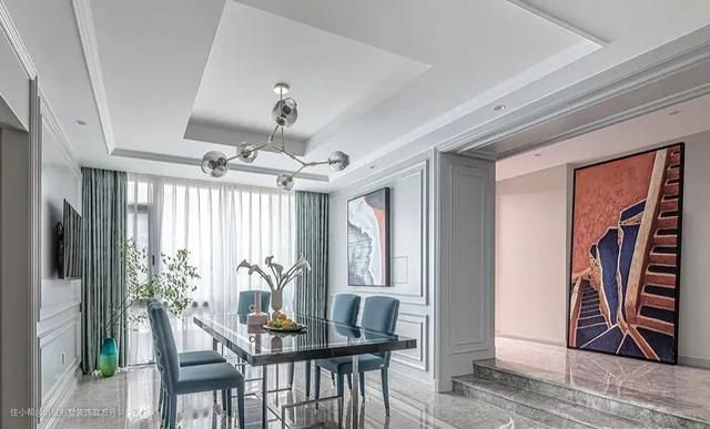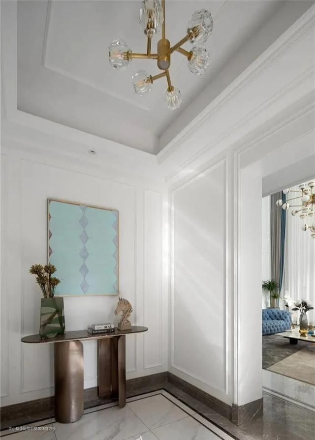 石膏线吊顶是另外一种常见的吊顶形式,在平顶式吊顶的基础上外加一圈石膏线,比较适用于简欧,法式以及简美等风格。