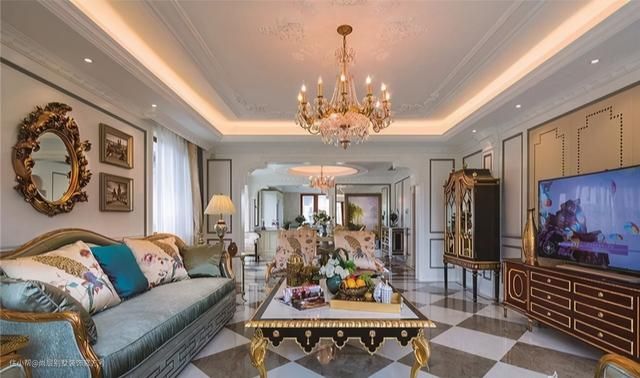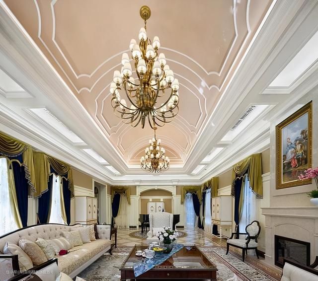 此类吊顶形式一般是搭配空间划分来设计,通过天花的造型和室内空间的相互呼应,营造空间统一和谐的气氛。一般和其他吊顶形式相互搭配设计,多用于法式、欧式、美式等风格。