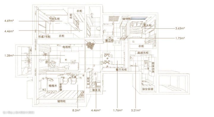 衣帽间:4~5 m³(各类衣帽、鞋子)