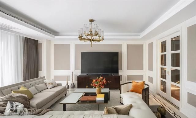 客厅的主要设计目的是营造轻松舒适的交流空间,所以表达空间的围合感和向心力尤为重要。