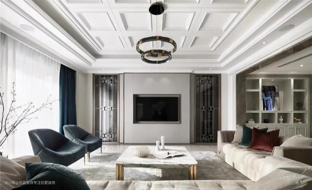 比如沙发上可以不必放太多的抱枕,有两三个点缀一下就好;可以将客厅的区域进行隔断设计,能够形成主次空间的层次性。