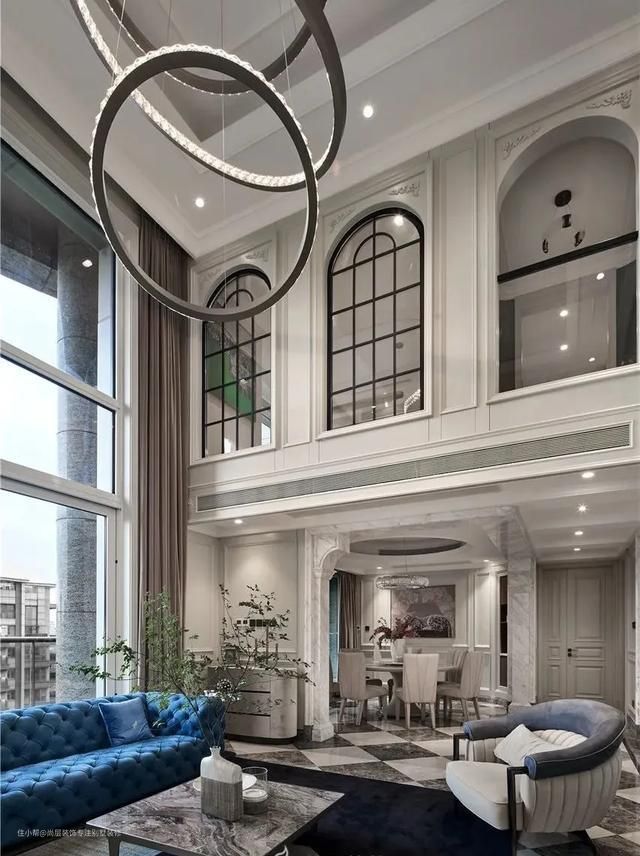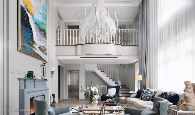 挑空客厅空间大,如果装饰的较少,则会显得比较空旷。因此可以做一些艺术处理,来彰显家居的品味。