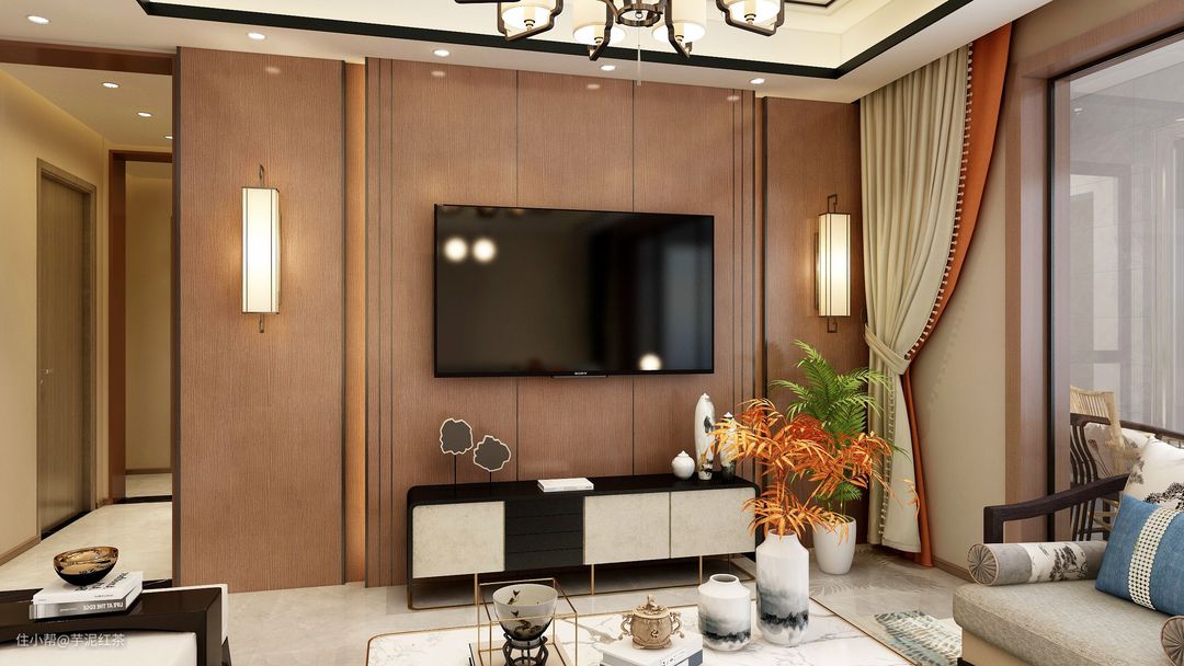 装修中看到网上好看的背景墙却不止如何施工,或者看着学却发现成品处处有各种问题,如下效果图新中式的背景墙,我们来分析如何施工: