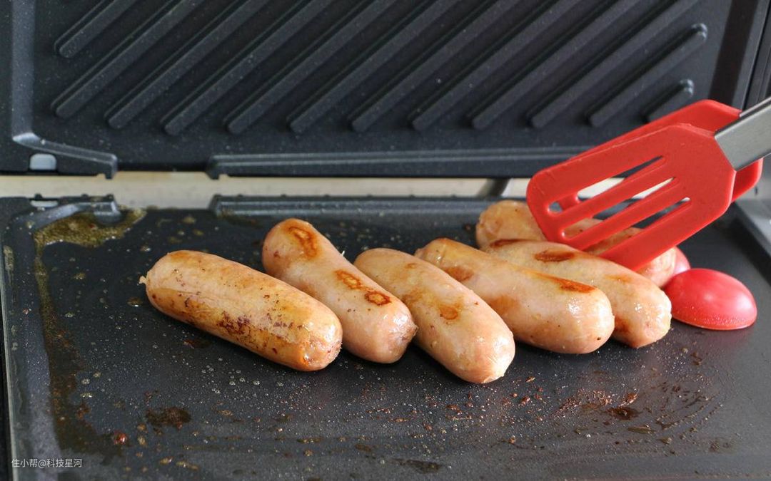 一开始我使用牛排机,以为煎烤时间久了,把手就会很烫,实际使用的时候,才发现得益于采用电木防烫把手,我煎烤了3块牛排和几根烤肠,把手依然不烫手。