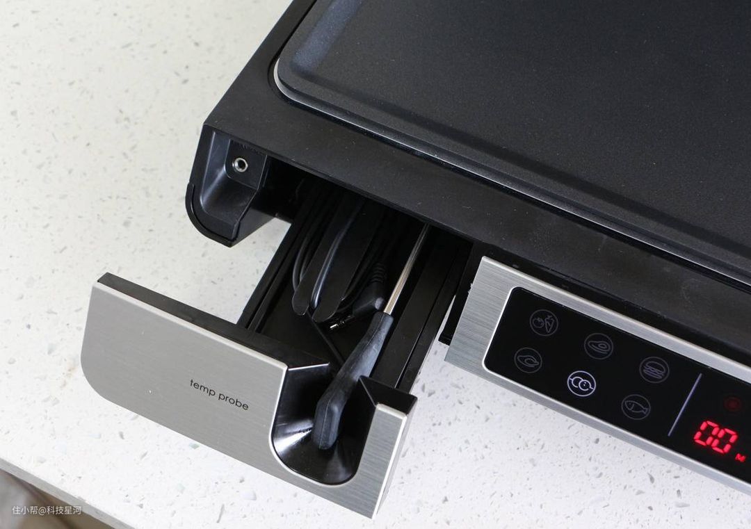 1、集油盒和感温探针盒均为塑料材质,稍微拉低了牛排机的质感。