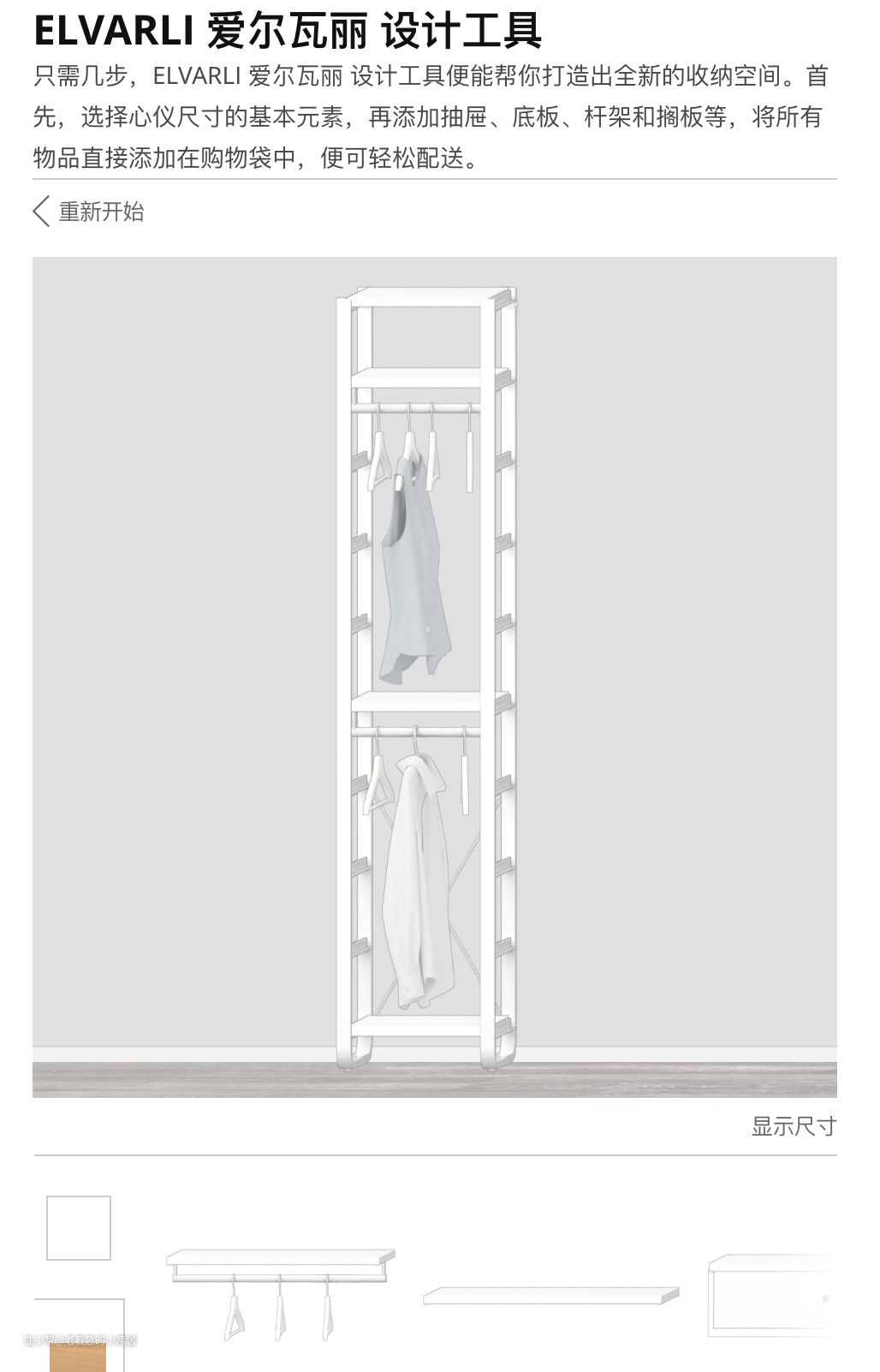 【避坑】下图要从购物车中删掉的搁板,是宜家设计软件必须给的套餐带的,如上图,老着急家用不上,还要麻烦的退货。身材娇小的小姐姐把挂衣杆降低一格,正好把这块搁板用上了。