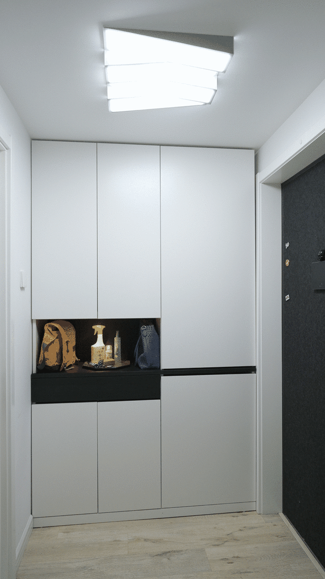 ❓【遇到问题】极限压榨玄关空间做收纳之后,过道可容一人轻松通过,若有大型家具电器入场就会因过道较窄,导致搬运过程中磕碰柜子墙角的概率增加。