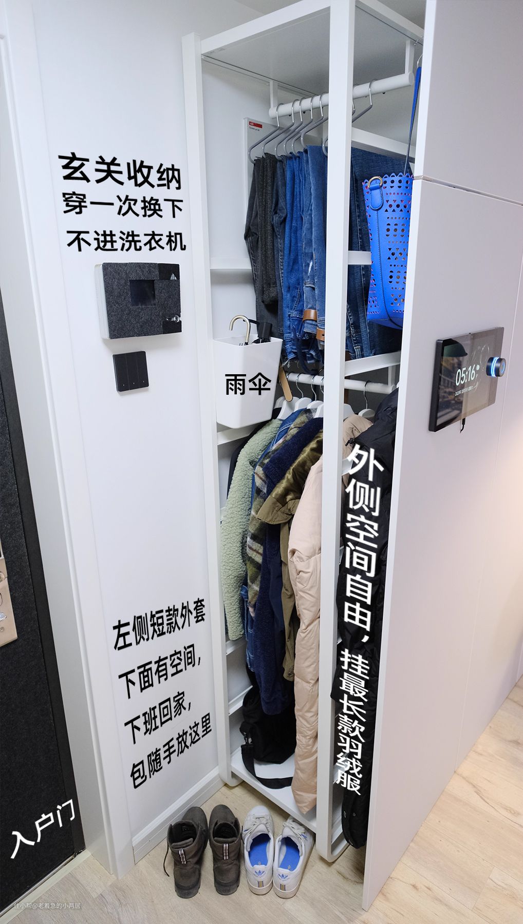 门后的单层衣架无法满足实际需求,本周换成了216cm高度的双层衣架。