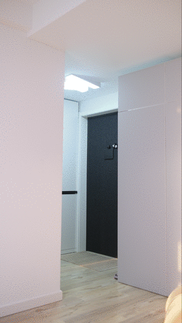 玄关衣架挪出,柜门向内打开,通道豁然开朗。洗衣机冰箱按摩椅,大型家具入户畅通无阻。