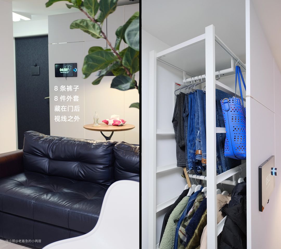 2.隐形门遮丑:隐形门背后藏收纳,二十件外衣裤身在客厅却看不见