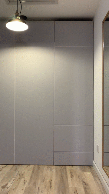 玄关衣架挪出,柜门向内打开,通道豁然开朗。洗衣机冰箱按摩椅,大型家具入户畅通无阻。