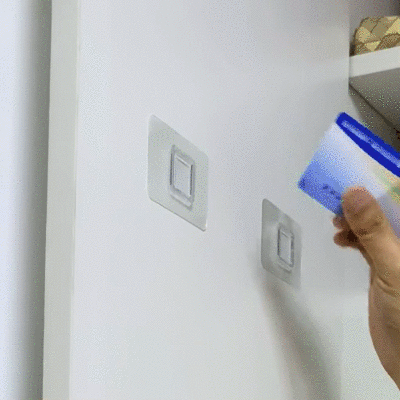 无痕贴排出空气的小技巧:用旧卡片上下左右,由内向外挂一圈,搞定!24小时后再把扣件挂上去
