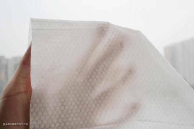 相机拍摄玻璃不容易看清楚,使用湿纸巾擦拭已清洁的窗户玻璃,湿纸巾没有明显的变色和粉尘,擦窗机器人的清洁效果不错。