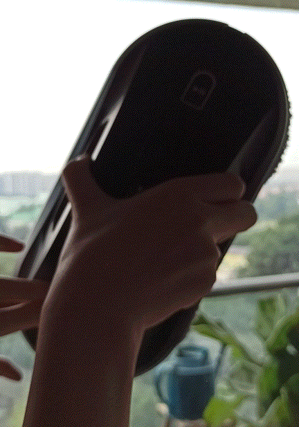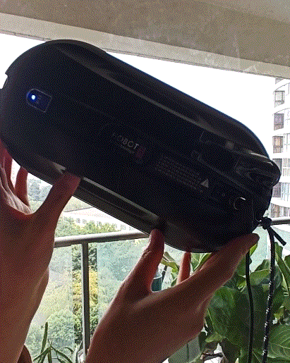 用手将擦窗机器人保持在玻璃上,开启电源确认风扇转动正常工作才松手。这个时候擦窗机器人就可以正常工作了。