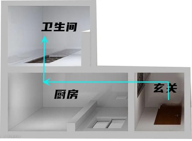 通行空间本就不宽裕的厨房,还成为了通往卫生间的必经之路,让厨房空间变得更加局促。