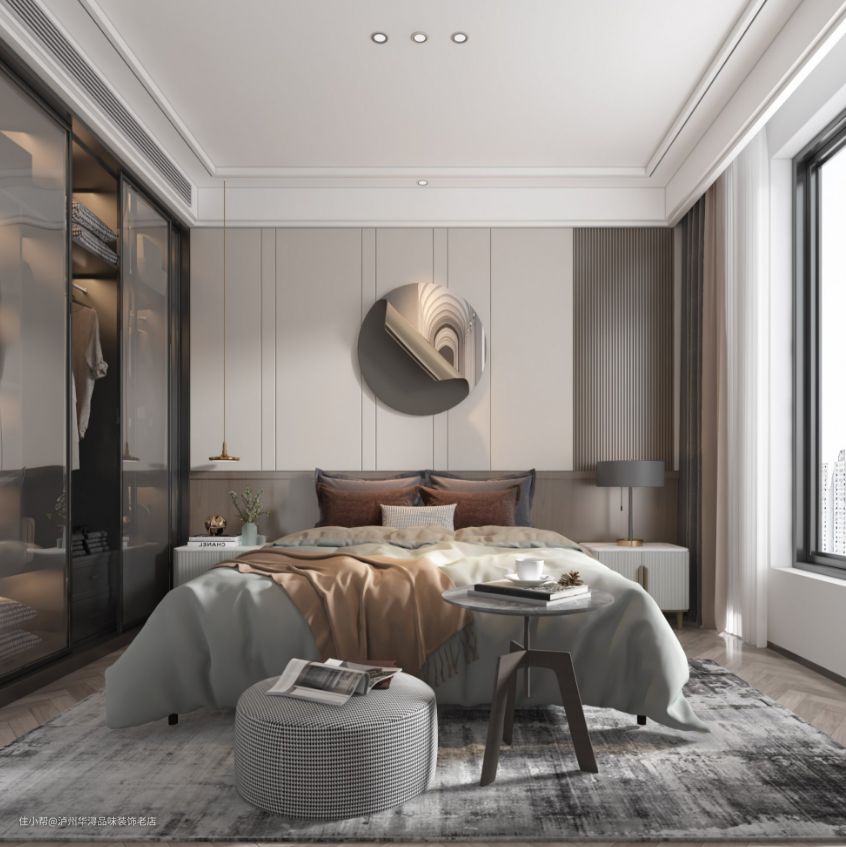 卧室以色彩的高度凝练和造型的极度简洁,在满足功能需要的前提下,将空间、人及物进行合理精致的组合,用最洗练的笔触,描绘出最丰富动人的空间效果。