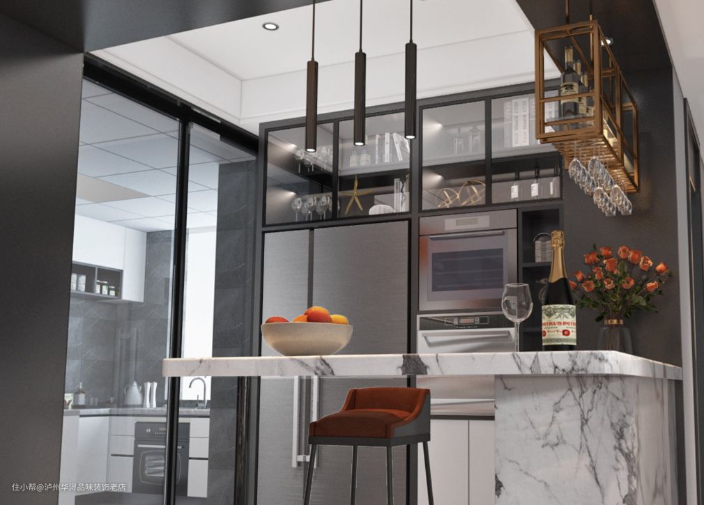小空间大变身,百变空间,可根据自身需要,对厨房、餐厅空间进行创造性利用。拉开视野距离,变身出一个小吧台,大大增加了空间的利用。