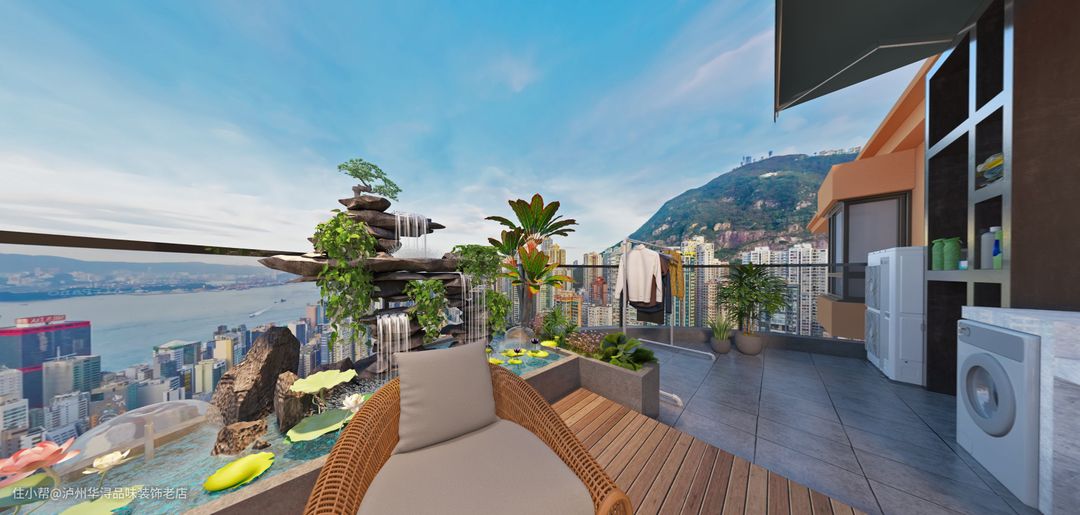 世纪玺悦的大阳台,是本案的亮点,阳台面积就接近60㎡,阳台能够给人一种特有的享受,也是泸州网红小区,很多人选择这里房子就是为了阳台而选择的,阳台的处理是接近自然,一张懒人椅,一沟清泉的流动,一清晨拉开窗帘亲近自然的秒感,让人亲临其境的感觉。