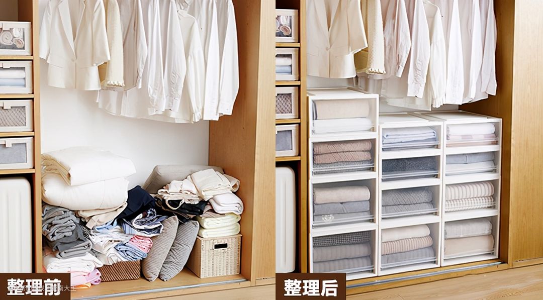 衣柜一到换季时尤其容易被翻的乱七八糟,用TENMA的透明收纳箱整理后,看起来干干净净,整整齐齐。