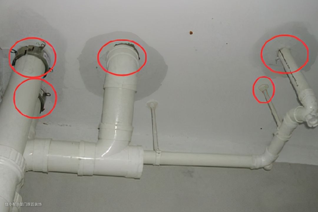 卫生间的排水管和地漏口穿透了楼板,混凝土和PVC管是两种不一样的材质,所以其交接处比较容易出现脱离,导致漏水。在防水涂料施工的时候,这些位置一定要多刷几道,以避免漏水。