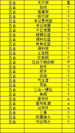这里不是所有项目都需要花钱的。如果你找的装修公司主材辅材按平米算,那么这里只需要计算总价。如果装修公司包五金,那么你也不需要考虑五金件。